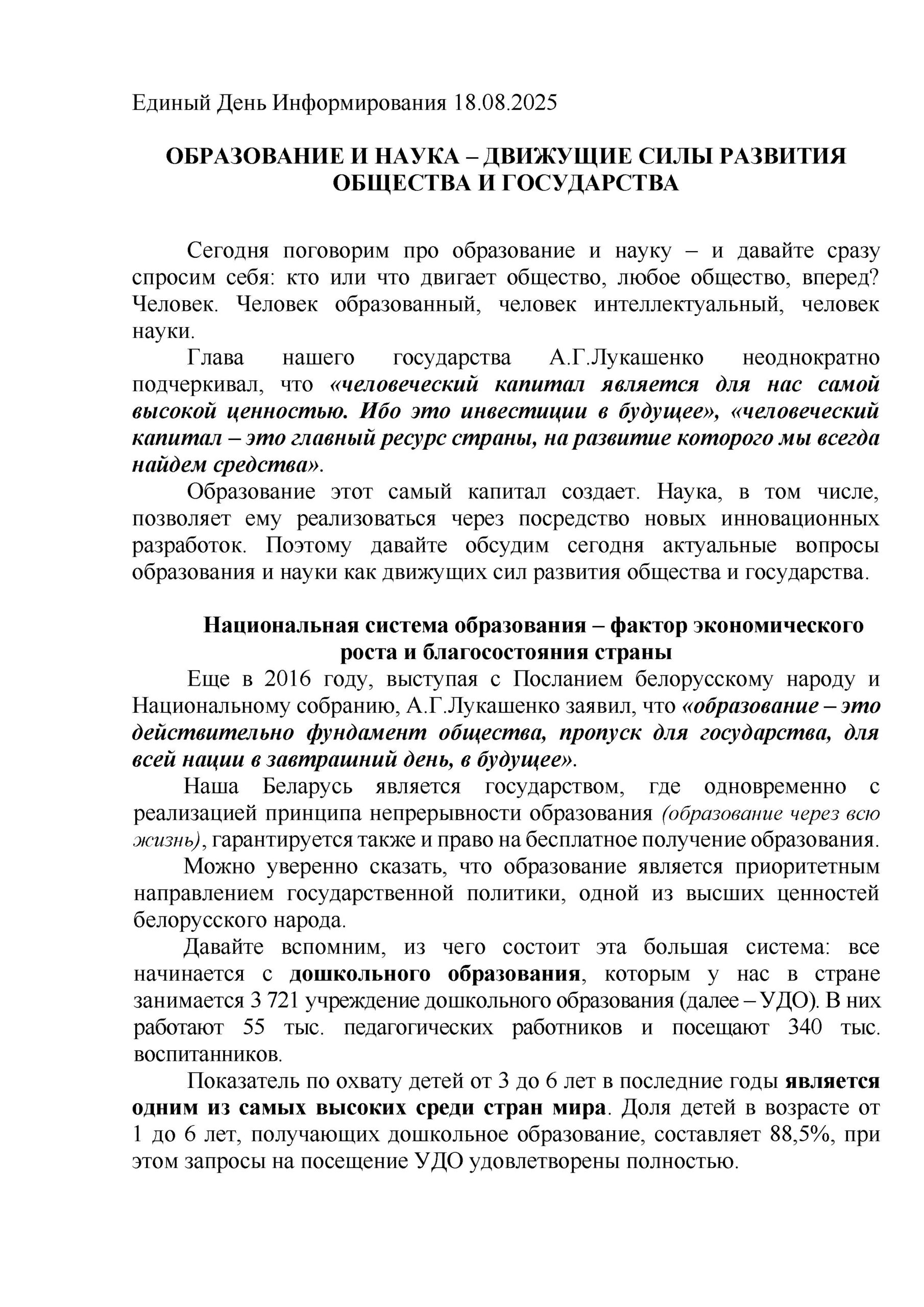 Образование и наука — движущие силы развития общества и государства
